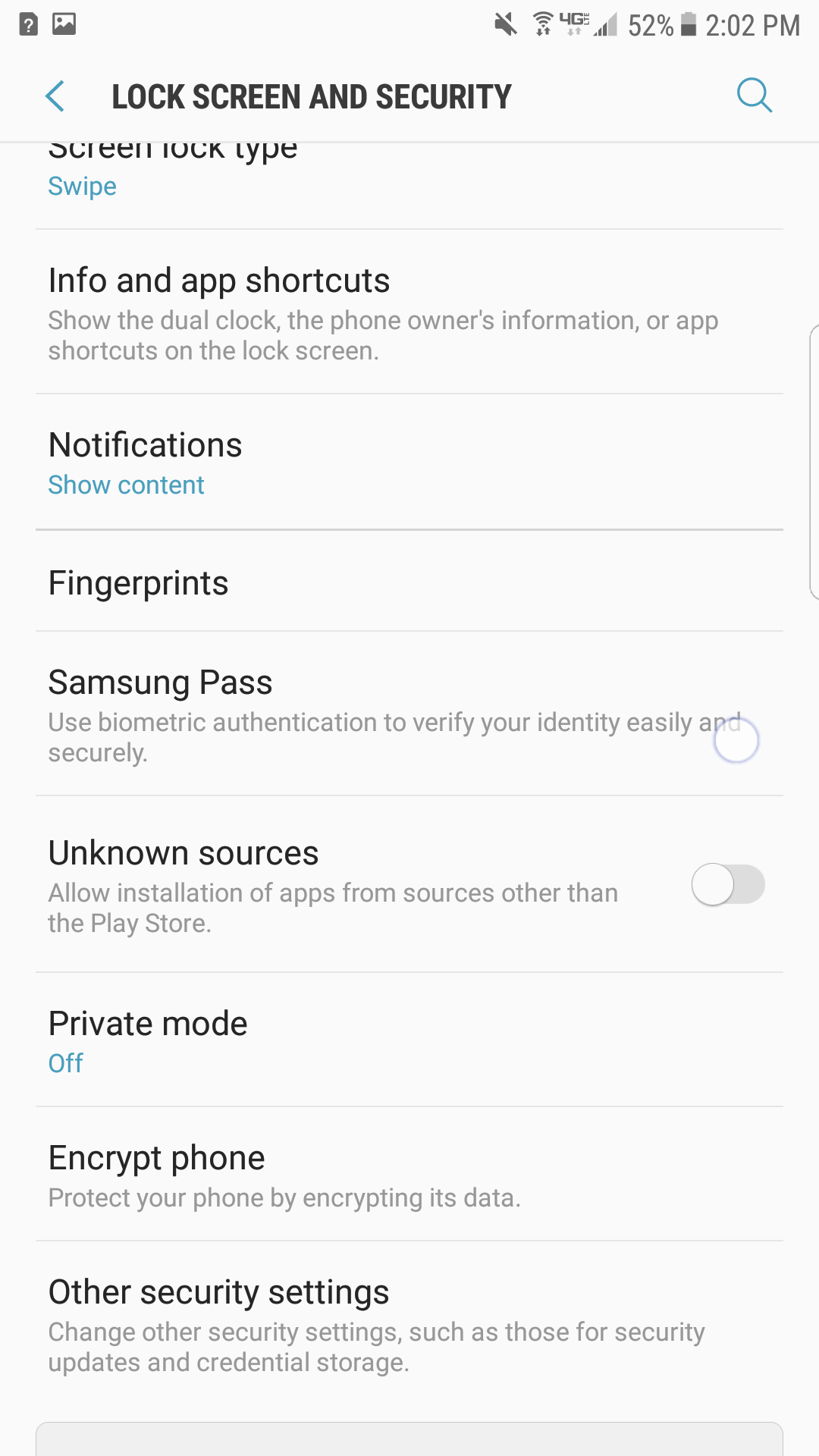 Go to Settings and scroll down to Lock screen and security.